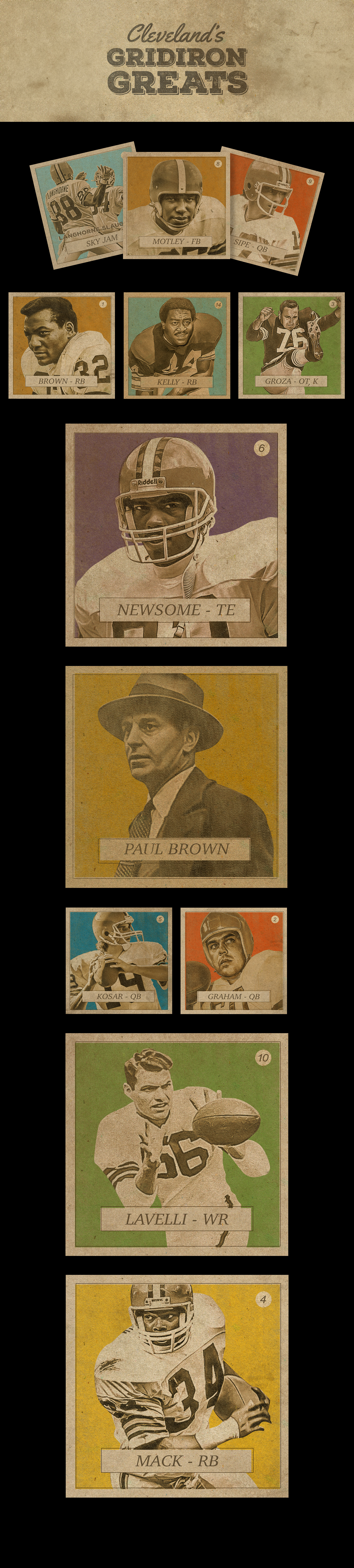 A limited edition football card set that combined a retro look with stylized player artwork, celebrating the legendary athletes who’ve played for the Cleveland Browns