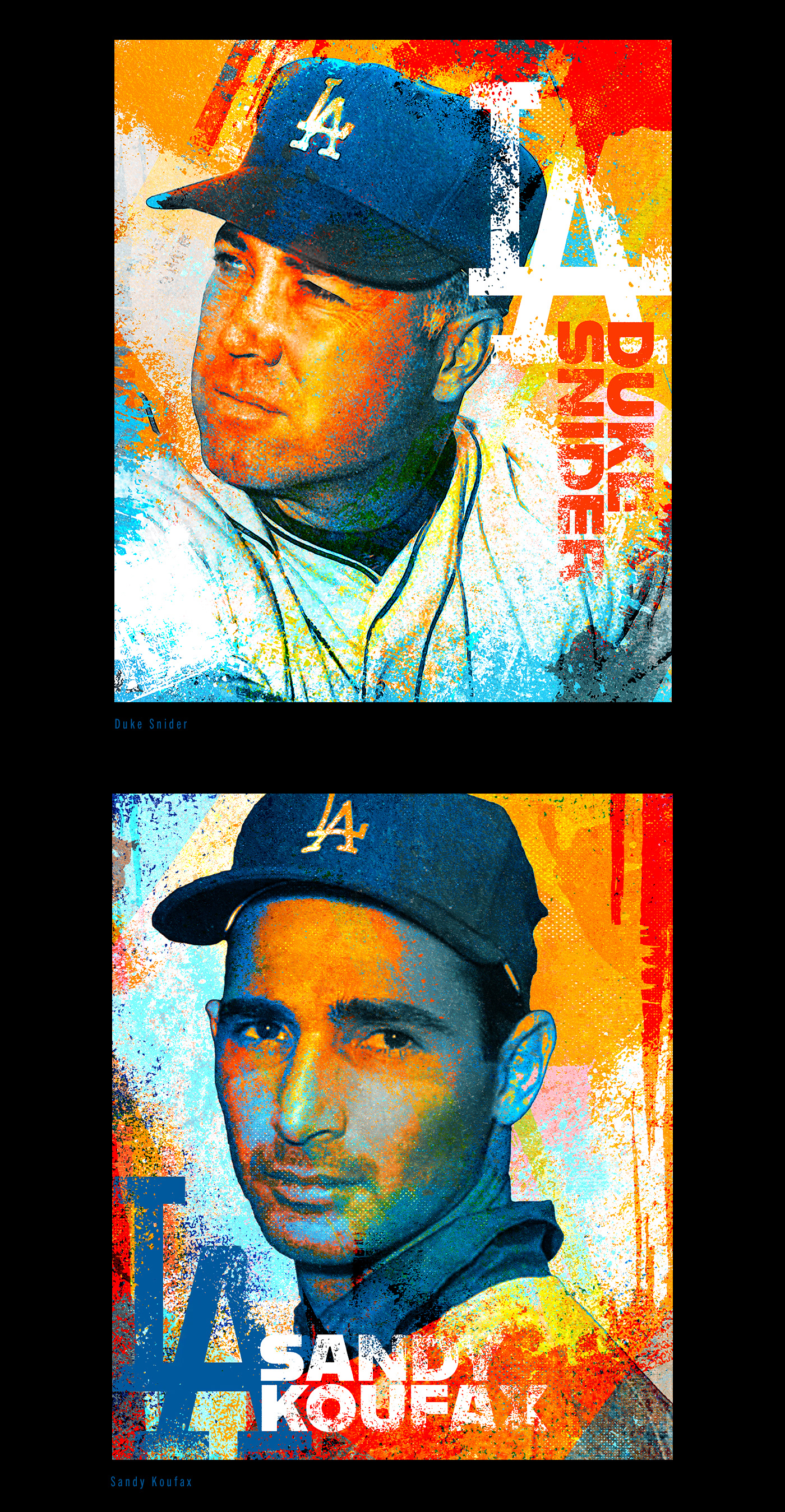 This colorful portrait series celebrates the rich history of the Los Angeles Dodgers, highlighting Hall of Fame players and other iconic figures who have left their mark on the team's legacy
